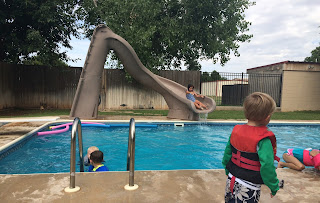Of course most of our free time is spent at the pool, I swear the kids could live there! I've been taking them every Monday, Wednesday, and Friday. But some times we go everyday. Cooper's football practices and games also occupied a lot of our time too. Allison has soccer ever Wednesday night. We recently went to the Rockhounds baseball game that Chevron host, it unfortunately got rained out. We were only there long enough to eat! We also took the big kids to see the new Jurassic Park movie. We've done picnic at the parks too!! Gone out for ice cream and Bahama bucks. Also we took the kids to see the new movie inside out at the drive-in. One day last week I took the kids to a splash pad in Odessa. A few days ago we meet up with several friends from church to swim and eat a ton of popsicles. We've had a few lazy days too. I've been keeping up with the kids studies also, reading and math everyday. I recently bought harder books for both kids and they love their new books! I know once baby gets here things will slow down so we are trying to make the most of our time.